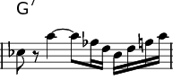 bass lick 4/4 tempo 90 | Cmin7 r4 r8 f8~ f2~ |CMin7 f4~ f8 eb8 f8 eb8 r8 f8~ |f4 eb4 f4 r4 |r8 g gb eb d f eb c |b8 r16 a16 b8 d c d e g |Fmin f e eb d c ab g f |bb c d f bb4 bb8 ab |Cmin7 g eb d f eb c r4 |r4 r8 bb+8 r8 bb8 bb4~ |Ab7 bb4 gb8 bb db4~ db8 bb16 gb16 |G7 eb8 r8 c+4~ c8 ab16 f16 d f a c |Cmin7 b2~ b4 b16 g a b | a8 f d b g+8 r8 r4 |